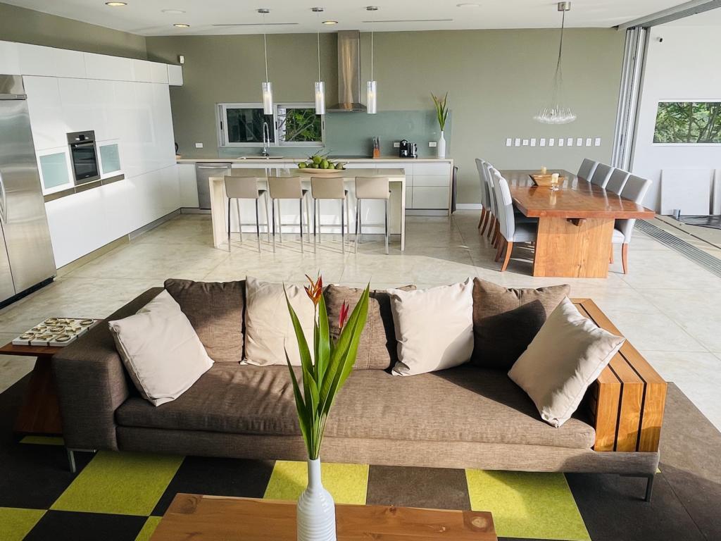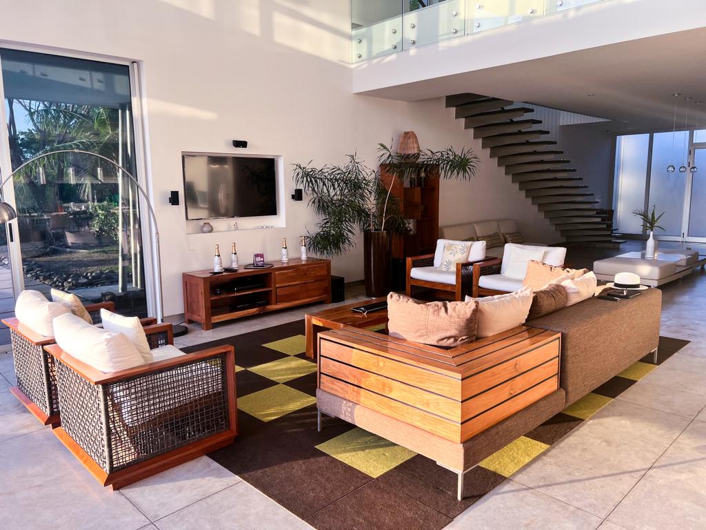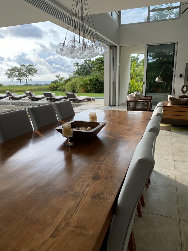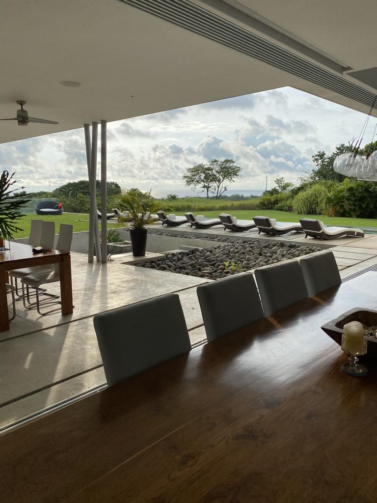 The big glas doors are flexible to move. So you have a direct way to the outdoor area, where you can find the pool, a big chillout area and an amazing fireplace.